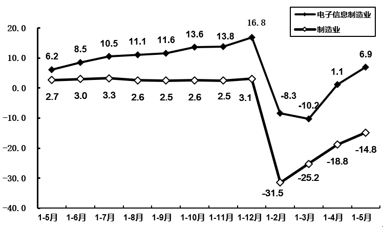 1-5月,电子信息制造业固定资产投资同比增长6.9%,同比加快0.7个百分点。