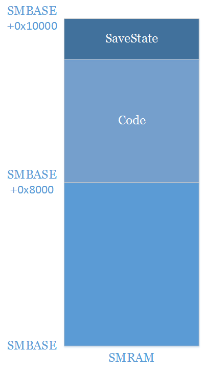 SMRAM是由UEFI固件保留以供SMM使用的物理RAM区域。SMRR可以保护它免受“常规”访问,也可以保护它不受DMA访问等等。SMBASE是一个必须在此范围内的地址,将用于确定在切换到SMM时必须将保存状态存储在哪里以及将指令指针设置在哪个位置。每个内核只有一个SMBASE(为避免两个内核同时切换而彼此重写保存的状态),对SMRAM内部的位置没有限制。