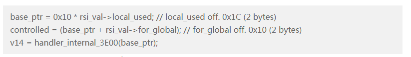 该处理程序要做的第一件事是从结构中的两个字段计算值,并在controlled调用内部函数之前将其设置为全局变量():