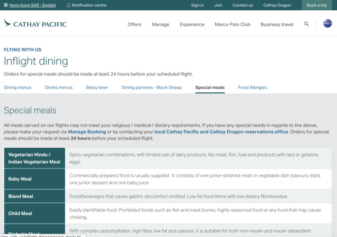 在这方面,航空公司和互联网O2O企业是标杆。他们在数年前就建立了这样的标准化设施,并且是运营竞争力的核心所在。这些行业已经将数字化服务前端作为标配,竞争已经在更高的水平上展开。比如航空公司已经允许顾客提前若干天通过App办理登机手续,甚至允许预定特殊口味的餐食。国泰航空允许用户提前24小时从21种特殊膳食中选择。