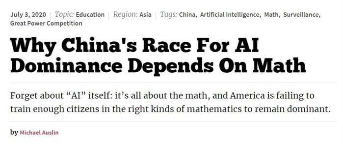 这篇报道在开篇即提到:“忘记人工智能本身吧,它只是一个数学问题。美国没有培养出足够擅长数学的公民,因此无法保持统治地位。”