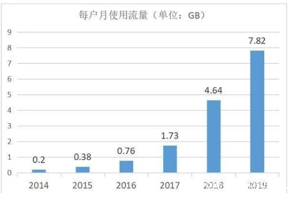 2019年,移动互联网接入流量消费达1220亿GB,比上年增长71.6%,这意味什么你在5年前200兆流量就够用了,到现在10个G的流量给你,你都不够用。这其中一方面是手机的更新迭代,手机功能更强大,使用流量的APP也不断增多,像微信、抖音、快手等日益发展的社交网络。我们对流量使用的需求的激增也导致我们4G网络变卡。