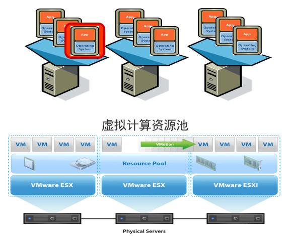 以上是比较通俗的说法。书面的解释是,虚拟化指的是对计算资源进行抽象的一个广义概念。虚拟化对用户或上层应用隐藏了计算资源的底层属性。它既包括使单个的资源(比如一个服务器、操作系统、应用程序、存储设备)划分成多个虚拟资源,也包括将多个资源(比如存储设备或服务器)整合成一个虚拟资源。