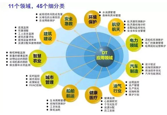 数字孪生技术在各个行业有广泛的应用场景。陶飞教授团队在《计算机集成制造系统》2018年第1期刊登的“数字孪生及其应用探索”一文中,归纳了14种应用场景,后来又在论文中介绍了数字孪生在航空航天、电力、汽车、石油天然气、健康医疗、船舶航运、城市管理、智慧农业、建筑建设、安全急救、环境保护等11个领域,45个细分类的应用。