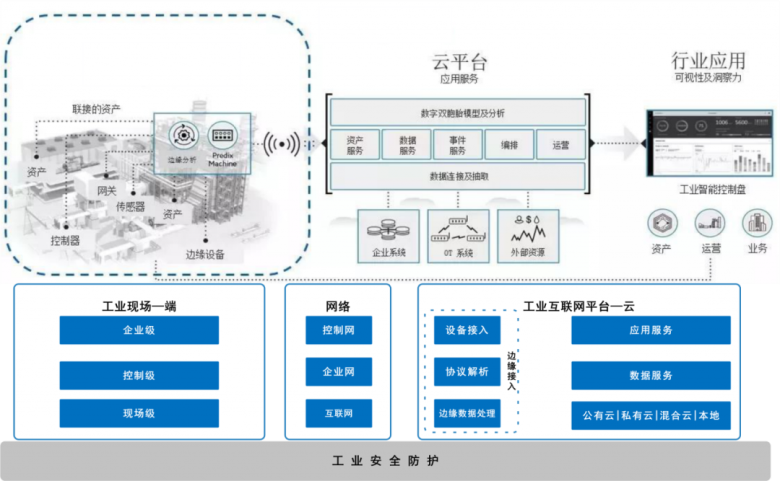 2017年国务院印发《关于深化“互联网+先进制造业”发展工业互联网的指导意见》,意见提出“构建网络、平台、安全三大功能体系,打造人、机、物全面互联的新型网络基础设施”。网络体系是基础,平台体系是核心,安全体系是保障。