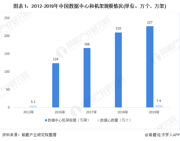 2019年中国数据中心数量大约有7.4万个。其中,已建成的超大型、大型数据中心数量占比达到12.7%;若包含规划在建数据中心数量,超大型、大型数据中心数量占比达到36.1%。2019年,中国数据中心机架规模达到227万架。数据中心大型化、规模化趋势仍在延续,区域性应用、多层级集团企业均倾向通过规模化建设避免盲目建设和重复投资。总体而言我国数据中心规模与美国相比有较大差距,美国超大型数据中心已占到全球总量的40%,中国大型数据中心仍有较大的发展空间。