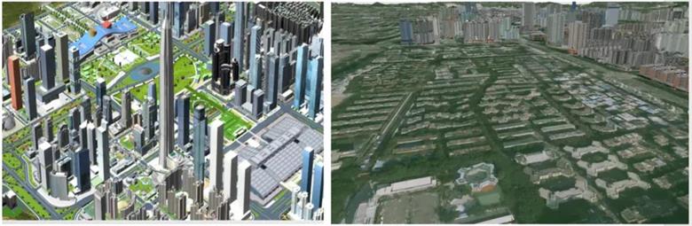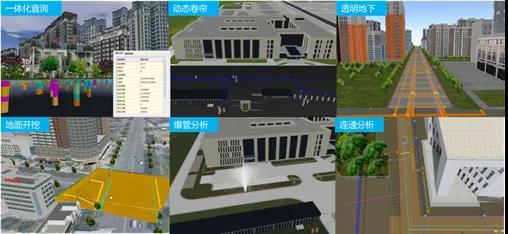 第六,地上工程设计方案优选。通过动态三维模拟不同建筑设计规划,对光照、声音、环境等不同方面进行分析,为城市建设规划提供辅助依据。