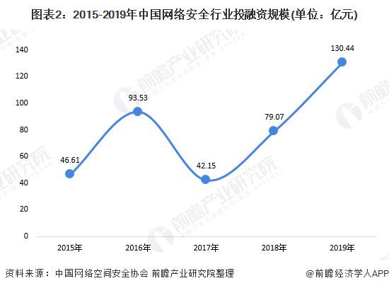 网络安全市场的不断增长吸引力众多投资方纷纷踏入该行业。数据显示,2015-2019年,我国网络安全行业的投融资总额呈波动增长趋势。2019年,网络安全行业的投融资规模达130.44亿元,是2015-2019年期间的最大值。