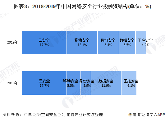 2018-2019年,行业的投融资流向按业务类型来看,“云安全”领域是最受投资者们欢迎的业务,2019年,云安全业务的投融资金额占比达17.7%。