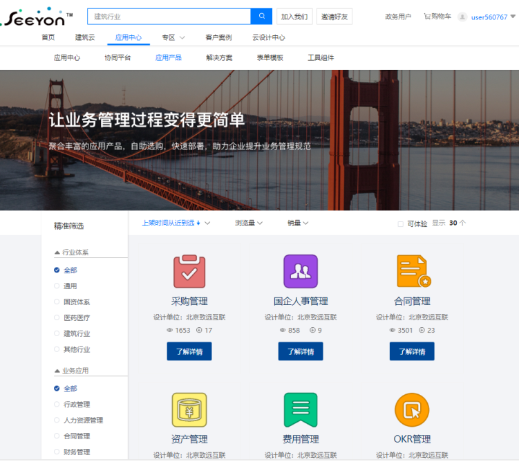 致远互联深耕企业信息化服务18年,并有专门的协同研究院做协同理论支撑,已积累了3万多家企业及政务客户,拥有各行各业的全面解决方案及行业头部客户的应用案例,致远协同云平台正是运用这一优势,在平台上汇聚了建筑、地产、制造、金融、IT互联网、医药、交通运输、国资体系、多元化集团等各行各业解决方案、应用方案、客户案例。通过“选、选、选”让企业的信息规划不再难。