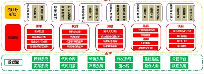 在数据驱动阶段,通过数据的反馈来优化价值交付链路过程中的问题和缺陷,通过对过程性数据的持续收集和分析发现交付过程中存在的瓶颈,通过对软件产品和用户的线上数据获取反馈并且及时作出调整,通过结果性数据去评价团队的成效。从而体现数据价值输出能力和决策成效。