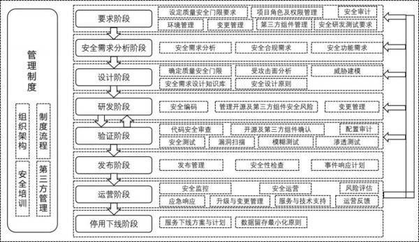 (2)安全要求,前期明确安全要求,如设立质量安全门限要求,进行安全审计,对于第三方组件进行安全管理等;