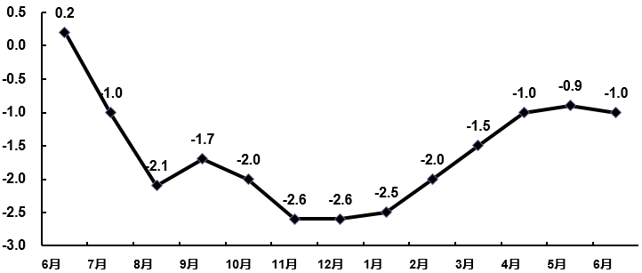1-6月,电子信息制造业生产者出厂价格同比下降1.9%。6月,电子信息制造业生产者出厂价格同比下降1.0%,降幅比上月扩大0.1个百分点。