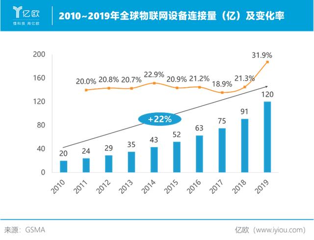 据GSMA(全球移动通信系统协会)公布的数据,自2010年至2019年,全球物联网设备数量的年复合增长率达22%,2019年设备连接数量达120亿,其中直接面向消费者的设备连接量为44亿(智慧家庭20亿,消费类电子产品12亿,可穿戴设备3亿,智能汽车3亿,其他消费类产品6亿)。综合分析业内参与者的布局,智能家居、可穿戴设备是消费物联网目前的发展重点。