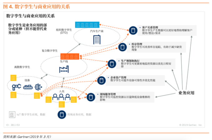3.组织数字孪生:在特定的业务流程中最大化价值,比如在制造流程中,或在整个企业运作中。通常用于监控和优化高阶企业层面结果。例如,根据不断调整的上市战略来优化整体制造能力,或者为公司所有利益相关者创造最大业务价值。