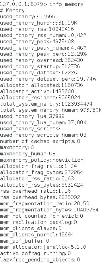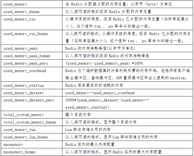 Redis作为内存数据库,对于自身所使用的内存情况是有命令可以统计的,通过获取到的相关信息可以了解Redis自身内存的使用现状,进而有助于判断内存使用健康度。Redis提供查看内存的指令为info memory。
