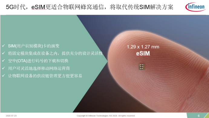 作为全球领先的半导体科技公司,英飞凌在日前举办的“英飞凌OPTIGA? Connect eSIM解决方案媒体交流会”上表示,5G时代下eSIM更适合物联网蜂窝通信,或将取代传统SIM解决方案。