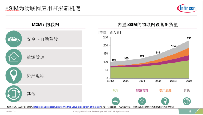 在市场层面,eSIM在消费类电子设备中的应用增长强劲,在物联网应用市场也潜力十足。