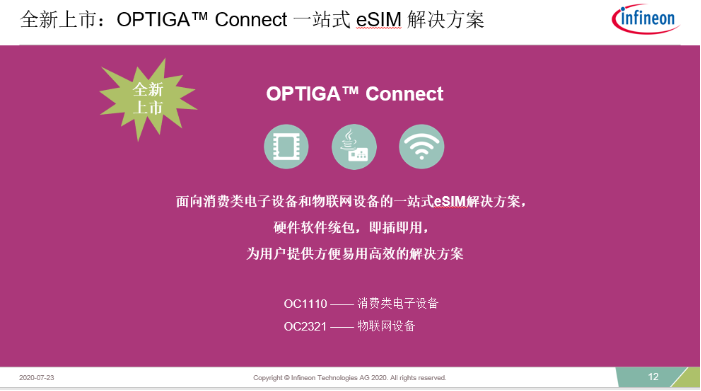 2020年5G商用将全面开启,针对这一庞大的5G消费类电子市场和物联网市场及需求,英飞凌在近期推出了“OPTIGA? Connect一站式eSIM解决方案”。