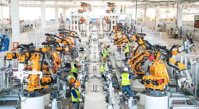 其中,当属自动化率达到100%的车身车间最具代表性。在整个车身制造流程中,几乎不需要人工干预,全部由机械臂和智能机器人完成对应工序,尤其是车身车间能实现24小时机器人全自动生产,是世界最先进的高端智能“黑灯工厂”。