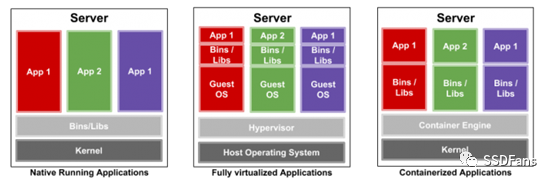 图2 在裸机系统、管理程序和容器上运行的应用程序之间的区别
