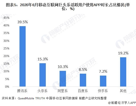 在使用时长上,腾讯系更是遥遥领先,2020年腾讯系APP使用时长占比达到39.5%。头条系排名第二,但是其APP使用时长占比少于腾讯系的一半。百度系和快手系的使用时长占比不到10%。