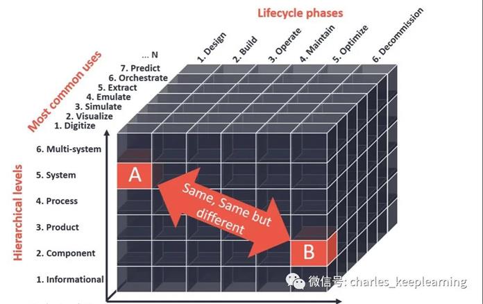 最终的数字孪生立方体 解释了为什么用于“设计阶段的产品仿真”的数字副本与“制造过程中的工艺参数预测”完全不同的原因。两者都称为Digital Twin,但只有有限的重叠。