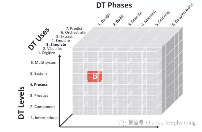6个级别,6个阶段和7个最常用的用途(6x6x7 = 252)有252种潜在组合,所有这些组合都描述了Digital Twin的不同分类。