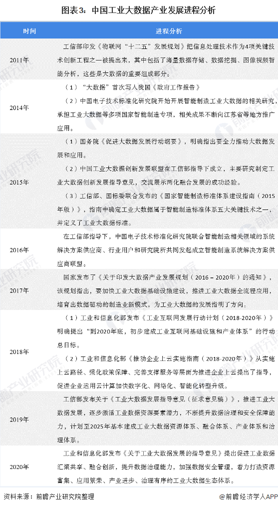 近年来,我国加快出台了一系列政策文件以全面指导我国工业大数据技术发展、产业应用及其标准化进程,在需求端和供给端均出台了相应的规划,加快了信息化技术和工业的深度融合,我国工业大数据应用迈出关键步伐,在需求分析、流程优化、能源管理等环节,数据驱动的工业新模式新业态不断涌现。