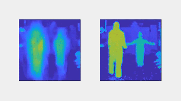 最终,这种神经网络已经足够了解时间数据与照片的对应关系,从而仅凭时间数据就可以创建高度准确的图像。它与飞行时间相机相比,时间图像模糊且缺乏细节。然而,却清楚地揭示了人们的形态。