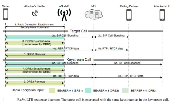 今年2月发现4G LTE和5G 网络严重安全漏洞的研究团队近日提出一种针对VoLTE的新型攻击——ReVoLTE。攻击者利用该攻击可以打破VoLTE语音使用的加密,并对特定通话进行监听。