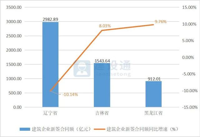 2、东北地区建筑企业新签合同额及增速情况