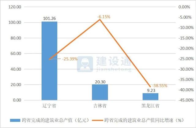 从外向度(即本地区企业在外省完成的建筑业产值占本地区建筑业总产值的比例)来看,黑龙江外向度最高为31.47%、辽宁29.99%、吉林20.36%。