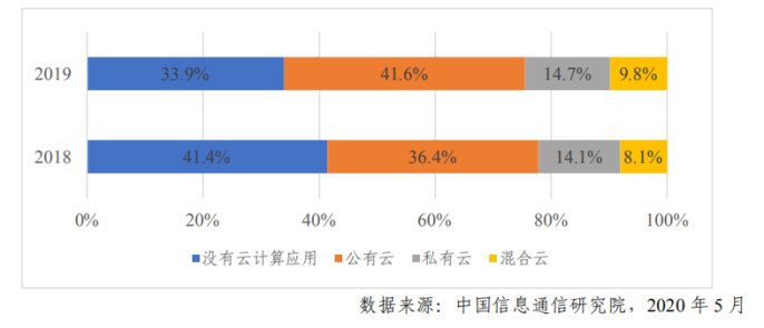 全球云计算市场快速增长预计混合云将成未来几年的增长点2020年7月29日,中国信息通讯研究院发布《云计算发展白皮书(2020年)》,据相关数据显示,2019年全球云计算市场规模达到1883亿美元,增速20.86%,预计到2023年,全球云计算市场规模将超过3500亿美元。在中国,2019年云计算市场规模达1334亿元,增速38.61%,领先于全球平均增速。其中,公有云市场增速更高,2019年同比增长57.61%,规模达689亿元,首次超过私有云(645亿元)。预计到2023年,中国云计算市场规模可达4000亿人民币,公有云与私有云结合的混合云模式将成为重要的增长点。RightScale2019年云状态报告显示,全球企业中有84%的采用了多云战略,其中,使用混合云的企业比例由2018年的51%增长到2019年的58%。Gartner也曾预测,未来使用混合云的企业占比将达到90%。国内市场上,混合云的使用比例还处于较低水平,据中国通信研究院数据显示,2019年中国企业采用混合云的比例仅为9.8%,预计在未来几年,混合云市场将快速扩张,成为云计算的重要的一极。