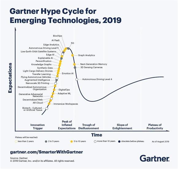 参照Gartner技术成熟度曲线,2017年边缘计算正处于创新触发之后的上升阶段,到2019年,边缘分析则处于上升阶段。由此可以,5G+边缘计算的发展潜力。