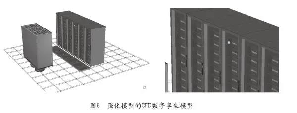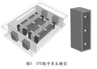 图9为数字孪生模型,其面积为36m2,采用地板下送风,空调一台,冷量60kW,风量216立方米/分,机柜6台,每台8kW。