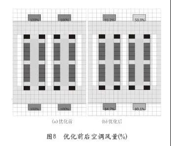 如图8所示,图8(a)为优化之前空调全部转速均为100%,图8(b)为优化之后空调转速下降了23.5%,全年可节能50%。