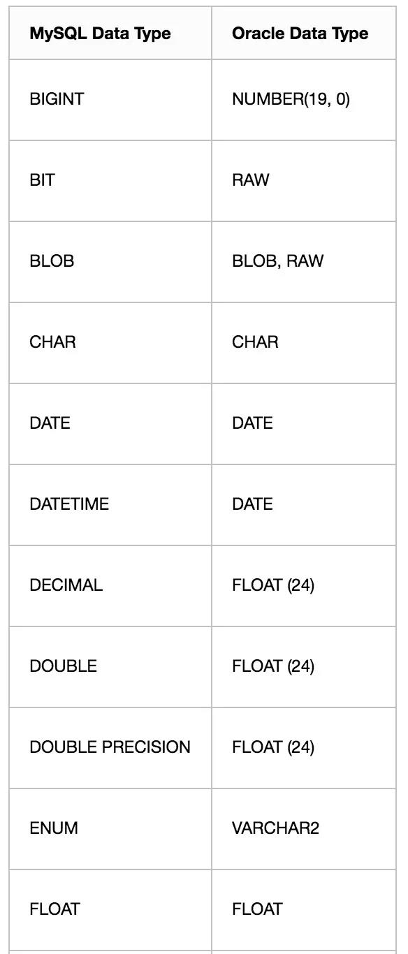 5、Oracle、DB2 迁移至 MYSQL、PG 的 表的限制、数据类型映射关系,如何处理?