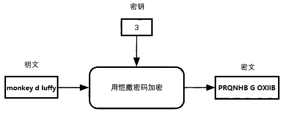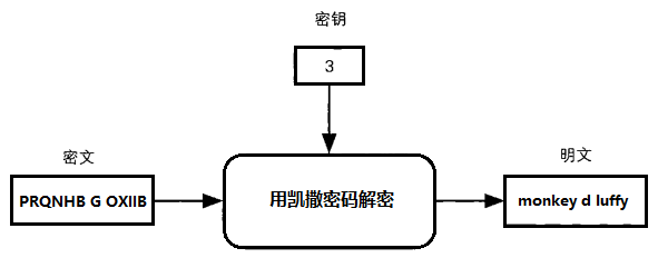 这样,明文 monkey d luffy 就被转换成了密文PRQNHB G OXIIB,monkey d luffy这个词我们能够看懂,但
