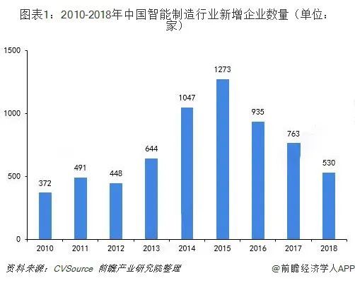 近年来,我国智能制造成为行业发展驱动。2014-2015年中国智能制造新成立企业数量骤增,处上升风口时期,工业巨头、互联网科技等领域企业拓展业务范围,积极转型,进军智能制造行业。2016年中国智能制造新增企业数量开始下降,开始走向深化智能制造关键技术和应用领域。到2018年,新增企业数量为530家之多。