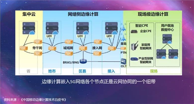 如果定制这种现场级的边缘计算成本较高的话,也可以选择部署在稍远一点的节点。例如,在基站侧的机房内部署边缘计算,虽然安全性较用户端有所下降,但是可以降低成本。对于成本敏感性更高的用户来说,还可以选择在城市5G网络汇聚节点部署边缘计算,也能保证一定的安全性及低成本。如果成本非常敏感,就只能考虑将在云计算来实现服务。所以,边缘计算也是5G实现个性化定制服务的利器。