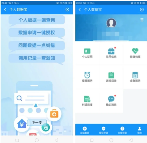 浙江—浙里办(温州):「个人数据宝」应用平台依托浙江政务服务网数据库,再加上「区块链」技术的加成,将政务数据向数据用户本人开放,实现个人数据的精准匹配、便捷查询和授权使用。平台在保证个人数据不被盗用和滥用的同时,还向金融、通讯等行业或公共服务场景延伸,实现审批一证通办、银行贷款快速办和证件到期提醒服务等。同时,若用户在「个人证照」中发现个人数据与真实证照存在缺失或错误,还可在线提交纠错申请,由数源部门进行核验修正,并且用户可以通过「纠错进度」查看问题数据处理进度、结果。