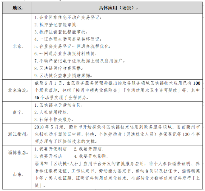 表4:国内「区块链+政务服务」部分应用场景汇总