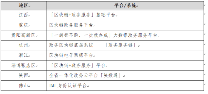 表3:国内「区块链+政务服务」部分应用/平台汇总