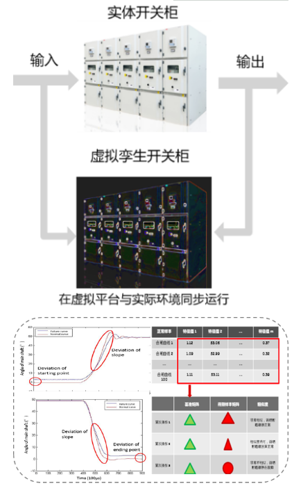 数字孪生技术应用于配电开关设备的全生命周期数据管理,通过数字仿真、物联网技术、虚拟现实等多种技术手段,将产品的各方面属性映射到虚拟空间中,形成数字镜像,仿真产品全生命周期过程中采用基于数字孪生技术建立的机理算法模型,在整个产品生命周期运行过程中与虚拟孪生模型进行同步比对,实时评估诊断和及时预测设备失效风险,实现基于设备状态的智慧运维管理。