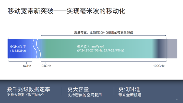 这些毫米波的天然优势,与5G其他技术一同,才可能最终实现5G所畅想的更高速率、更大容量和更低时延。