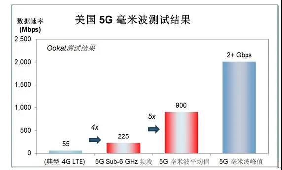 毫米波的优势已初见倪端。在智能手机领域。Ookla最近在美国和英国进行了5G网络速度测试,结果显示,与Sub-6GHz频段相比,5G毫米波终端的实测下载速度快4倍,平均速率高达900Mbps,峰值速率超过2Gbps。900Mbps的速率意味着什么呢?以有声书举例,900Mbps意味着长达10小时的有声书在1秒钟内下载完毕,速度惊人。现在,5G毫米波还能支持4K和8K的室外多媒体内容直播。