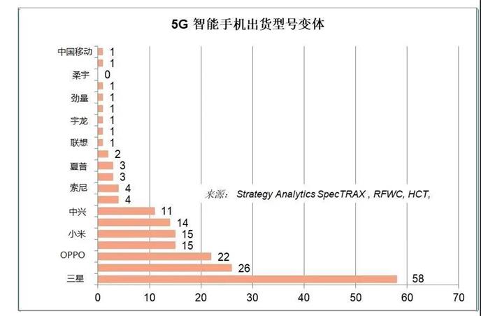 ▲ 图:全球移动设备供应商协会 (GSA) 表示,至少有 95 款支持 5G 的手机已出货,并于2020年7月8日上市。Strategy Analytics 运用SpecTRAX 数据库,统计出 185 款出货上市的型号变体。研究结果显示,在目前支持5G的185款智能手机中,有23款支持了毫米波频段,所有这些5G毫米波手机都在使用高通公司提供的蜂窝无线电芯片组和射频组件。图片来源/ Strategy Analytics。