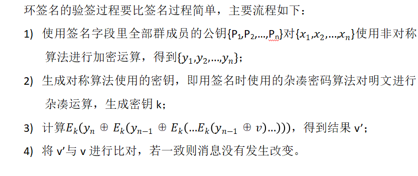 环签名是一种数字签名技术,它是将签名者的私钥隐藏在含有所有环成员公钥的密钥集合中,然后使用该密钥集合对消息进行签名生成环签名值,攻击者根据获取的签名值是无法追踪当前签名消息是由哪位环成员签署的,但同样能够实现消息的正确性和完整性保护。