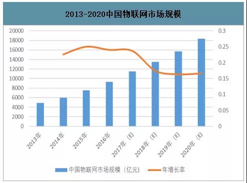 预测未来5—10年,物联网会是对中国经济和GDP产生最大影响的一个市场。公开资料显示,我国物联网产业规模已从2009年的1700亿元跃升至2016年超过9300亿元,并预计2020年达到18300亿元,期间CAGR达到了18%。